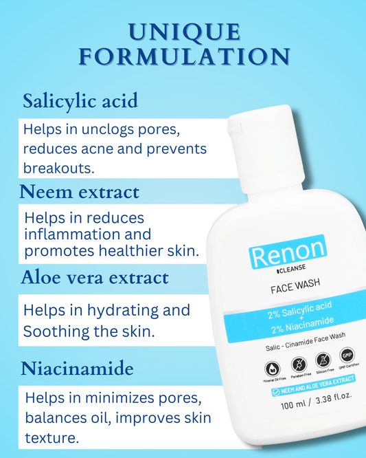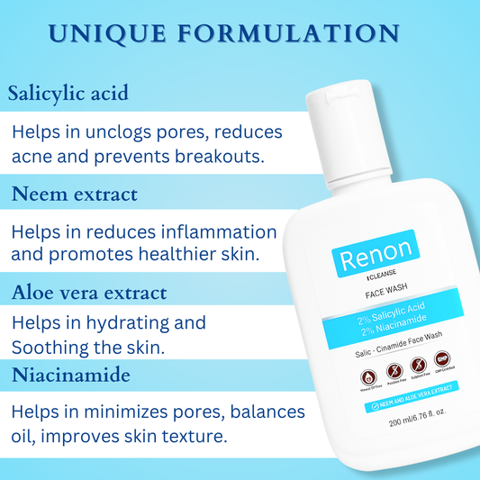 Renon Cleanse 2% Salicylic + 2 % Niacinamide Face wash | Super Saver Pack (200 + 100 ml)