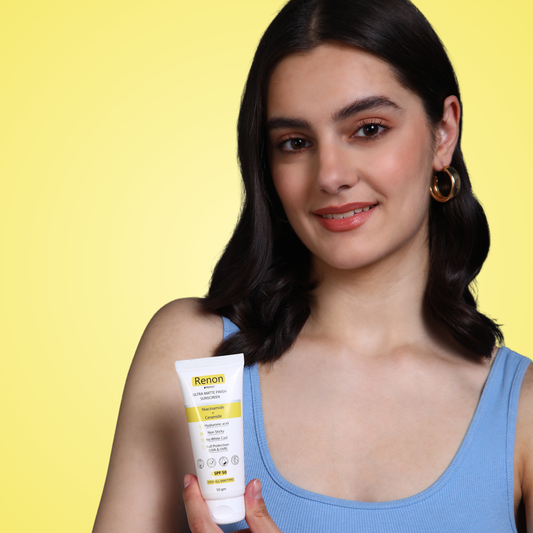 Renon SPF 50 PA+++ Matte Finish Sunscreen for oily Skin | Niacinamide + Ceramide